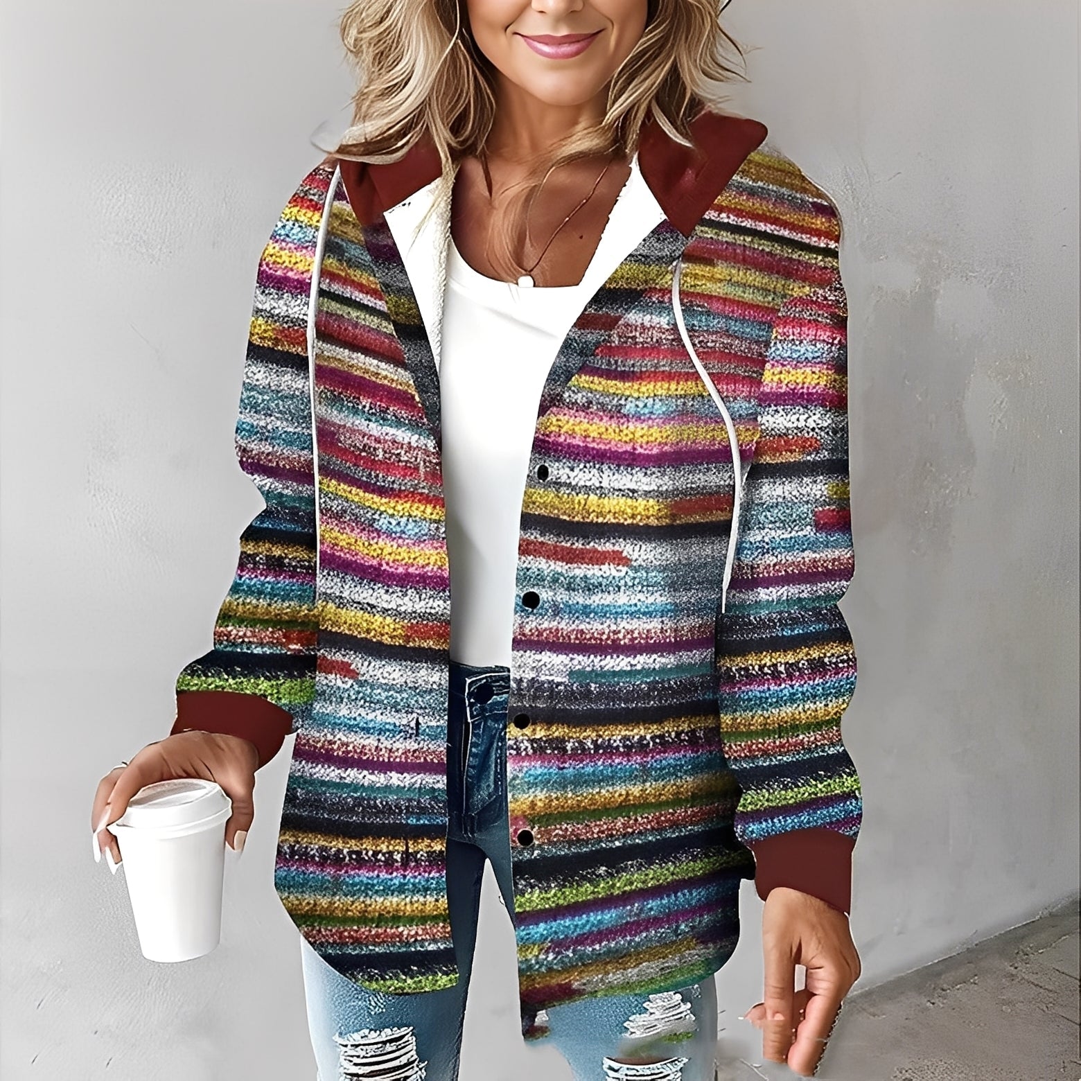 This elegant women's cardigan combines comfort with modern design. Thanks to its soft material and multicolored pattern, it always remains impressive. Ideal for everyday life, the office, or cozy hours at home. Its fit ensures freedom of movement and a pleasant feel. A multifunctional garment that should not be missing from any wardrobe.