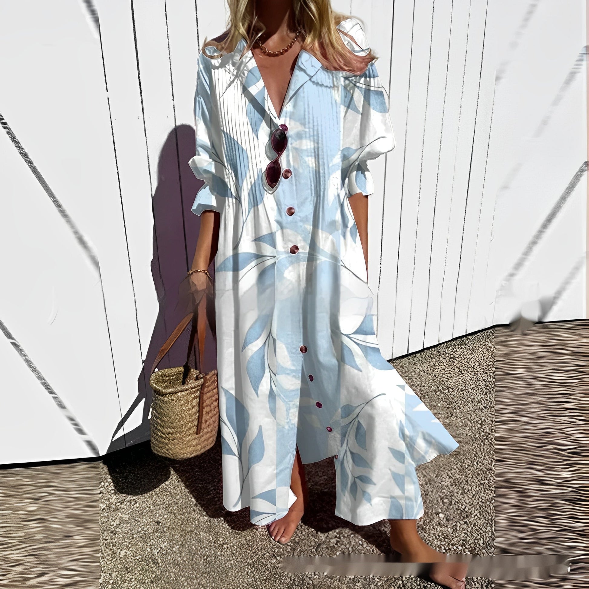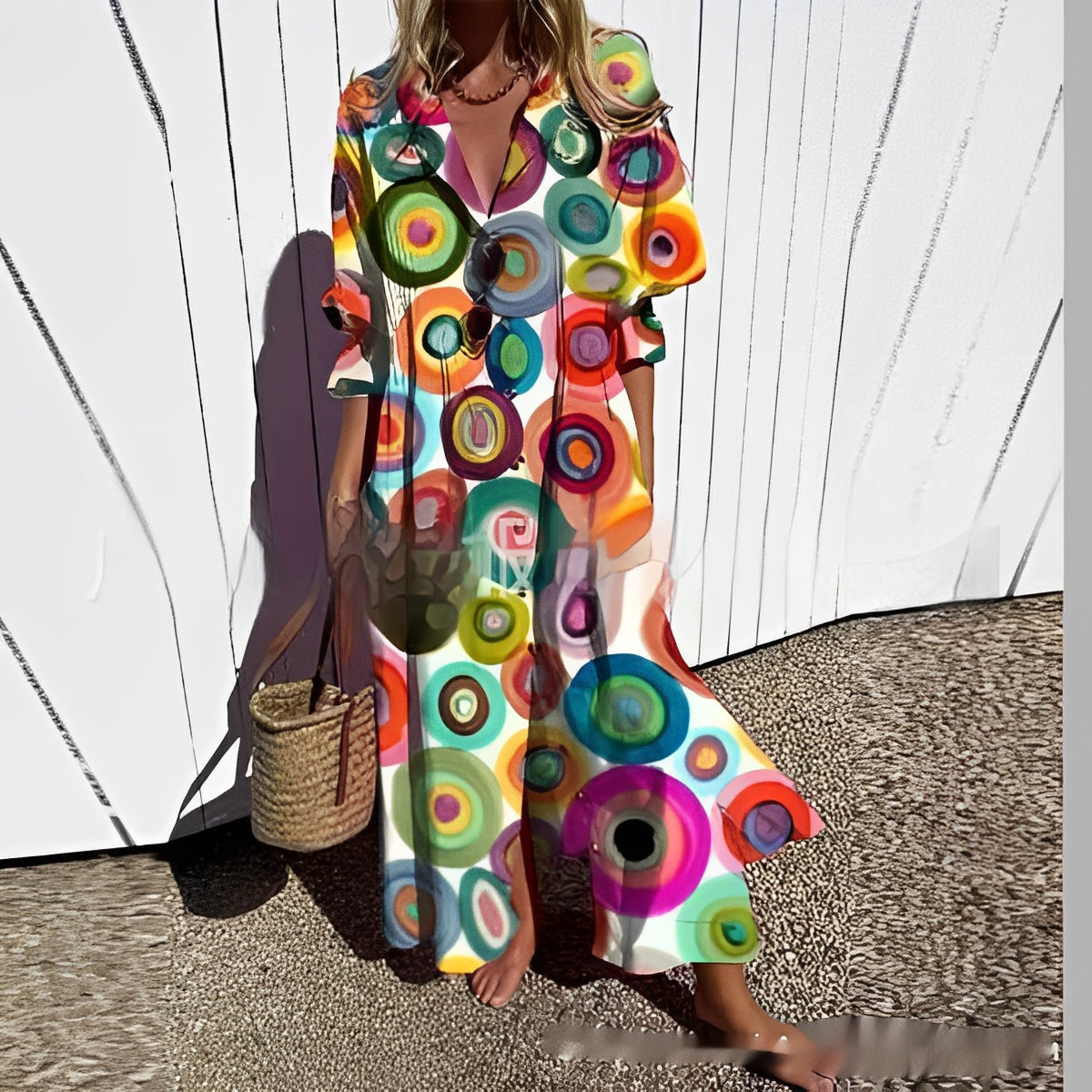 Lina – Women's dress with V-neckline and 3/4 sleeves