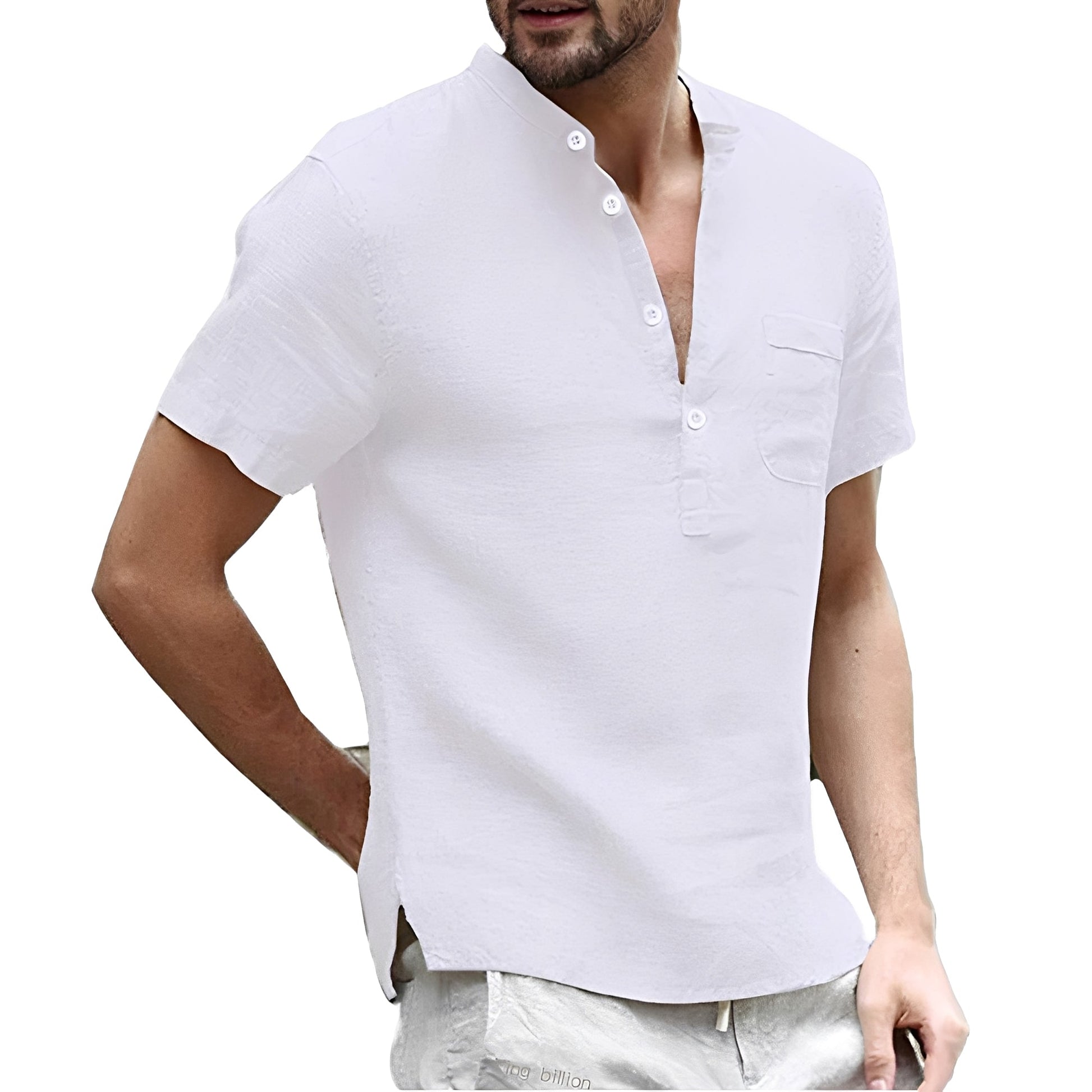Alton - Chemise décontractée à manches courtes en lin pour hommes