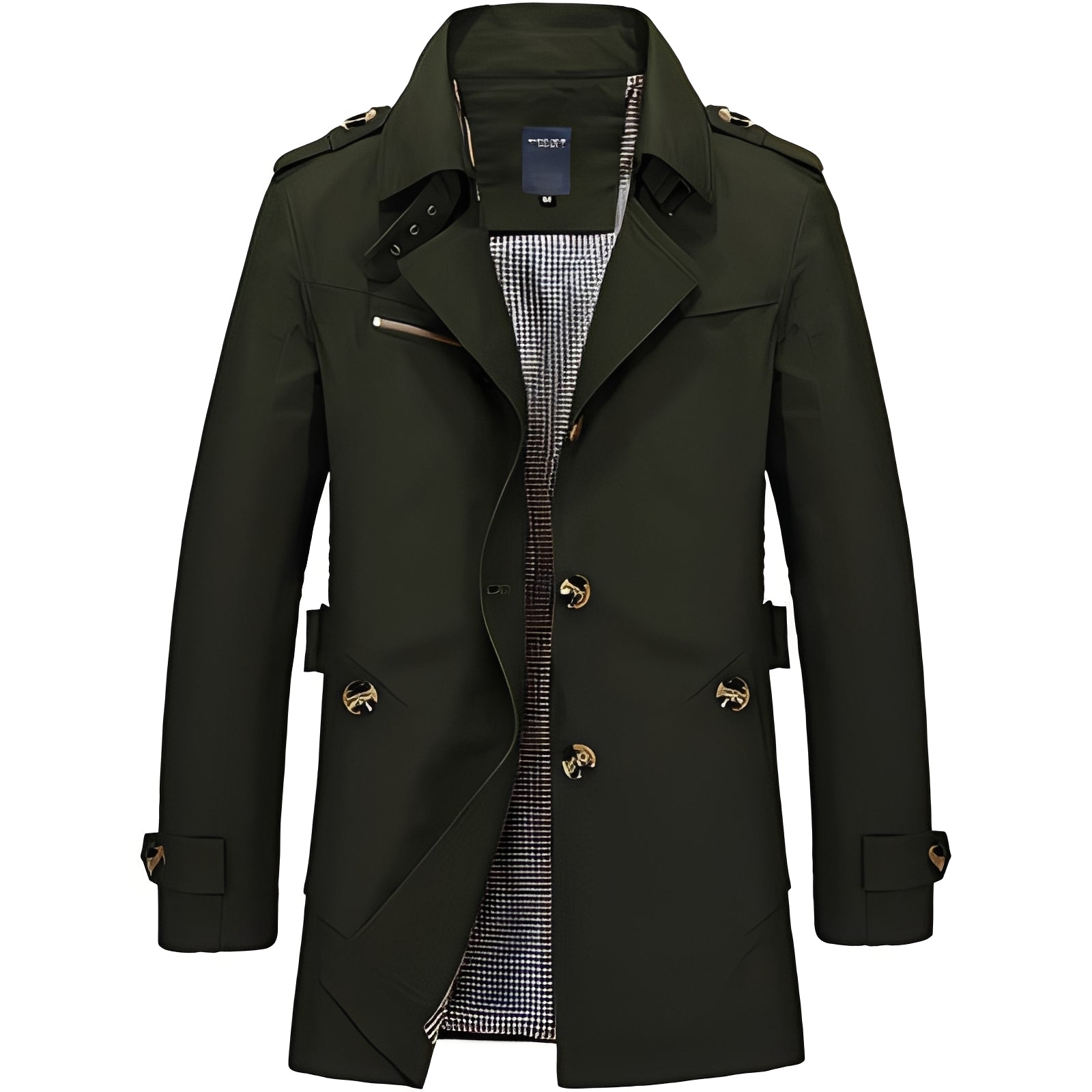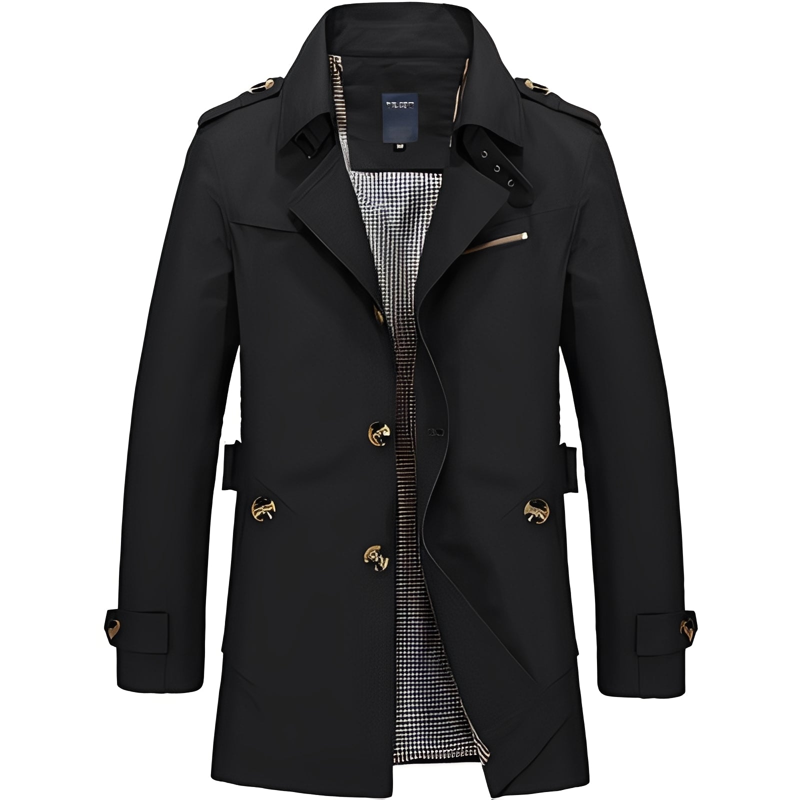 Płaszcz James łączy klasyczny urok z nowoczesnym komfortem. Lekki materiał sprawia, że jest idealny na wiosnę i jesień, a elegancki krój zapewnia zadbany, męski wygląd. Niezależnie od tego, czy do biura, na podróże czy na co dzień – ten płaszcz dodaje stylowego akcentu każdej stylizacji.