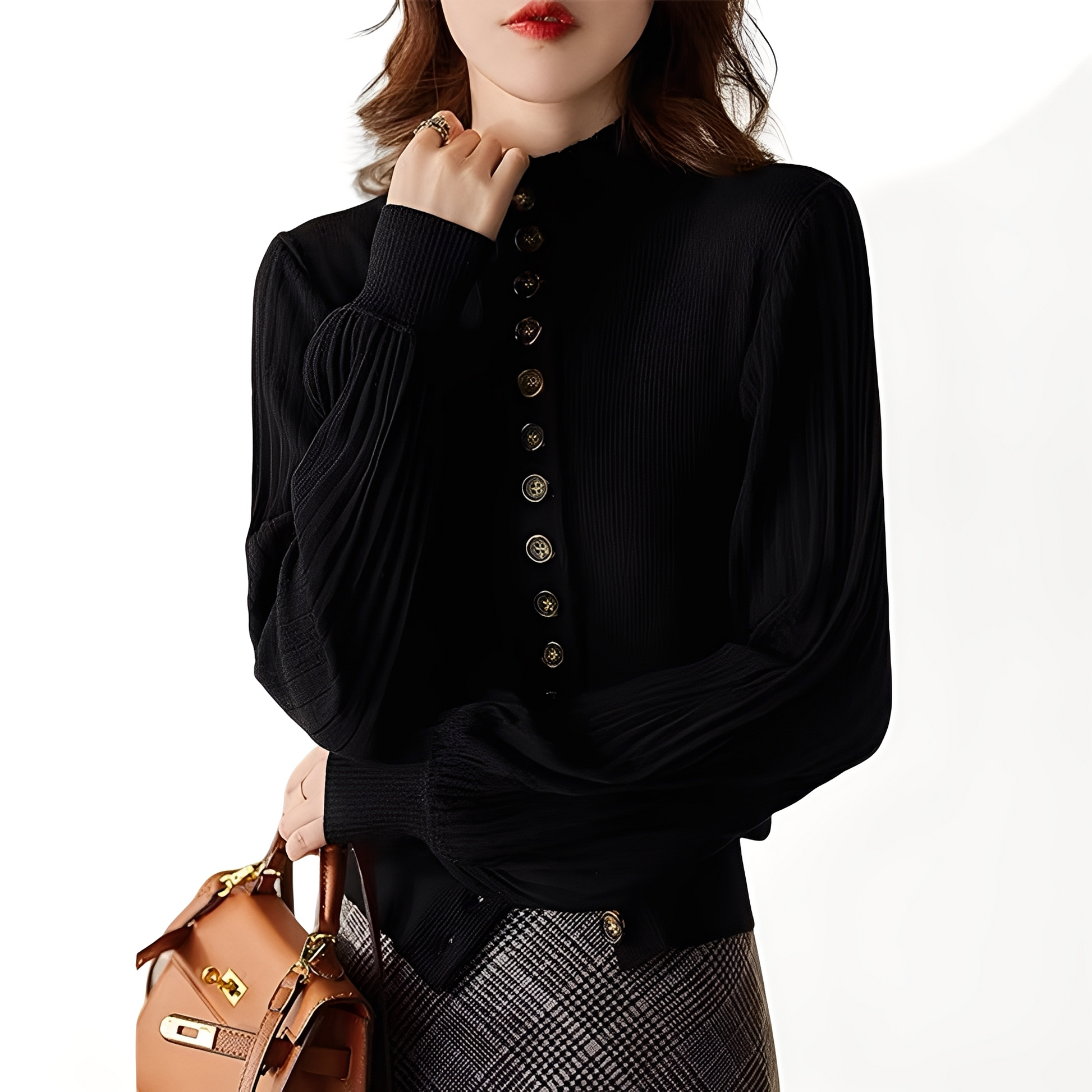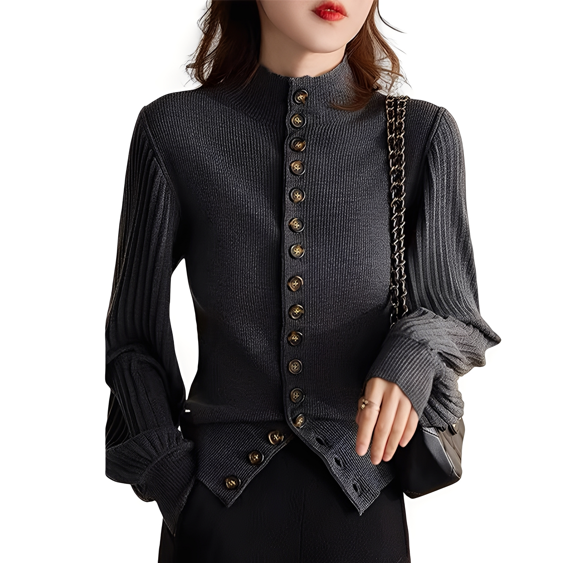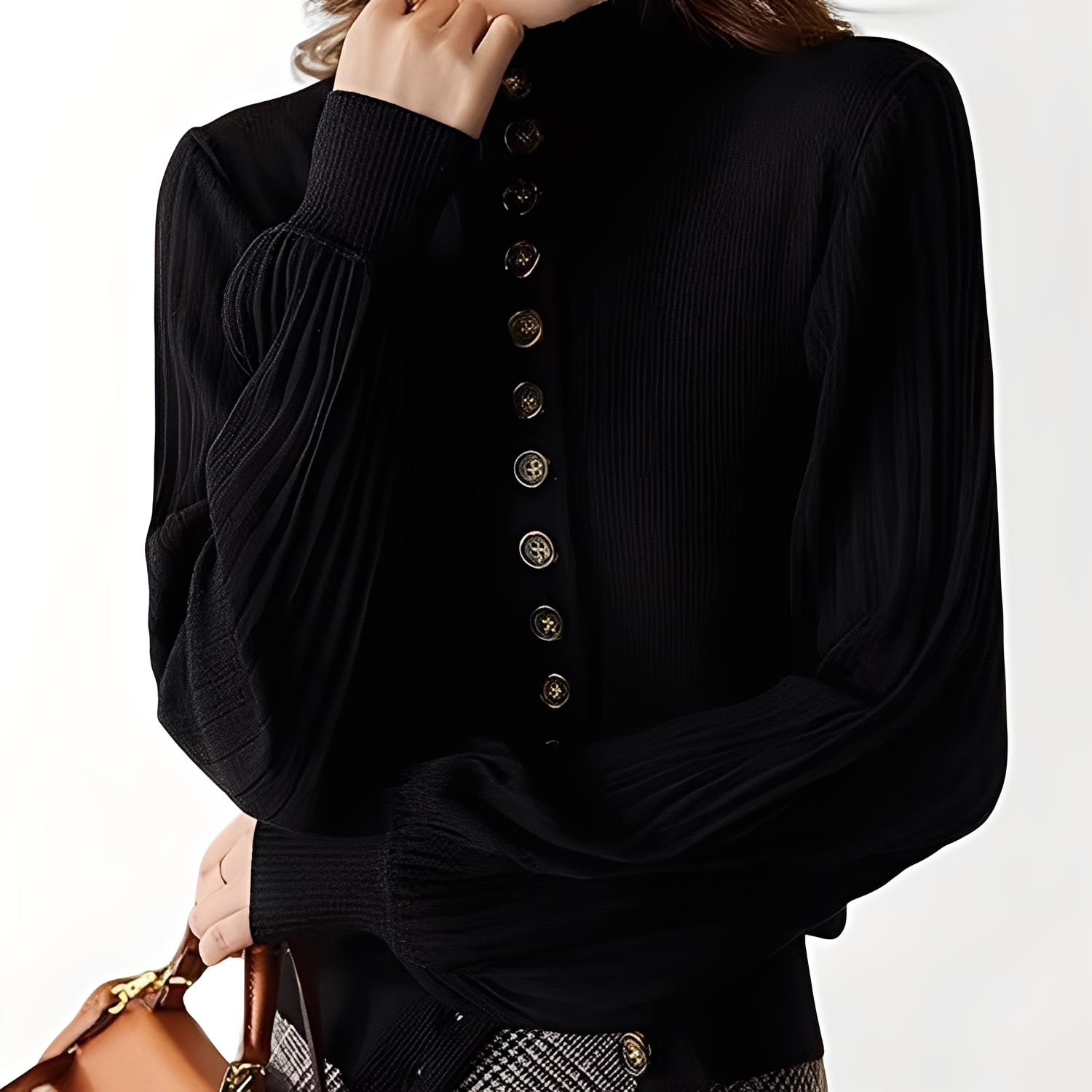 Γι' αυτό το ‚Adelyn - Πλεκτό Τοπ με Όρθιο Γιακά, Κουμπιά και Φανάρια Μανίκια‘ ανήκει στην γκαρνταρόμπα σας: