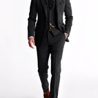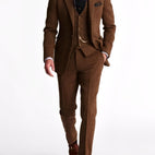 Το κοστούμι Alden είναι ένα κομψό, τριών τεμαχίων τουίντ σμόκιν που συνδυάζει διαχρονική κλάση και στυλ. Με την λεπτή του γραμμή και το υψηλής ποιότητας ύφασμα τουίντ, εξασφαλίζει μια κομψή εμφάνιση σε ιδιαίτερες περιστάσεις. Είτε πρόκειται για γάμο, γιορτή ή επαγγελματική εκδήλωση – αυτό το κοστούμι προσδίδει την κατάλληλη νότα σε κάθε περίσταση.