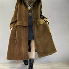 Alethea - Χαλαρό μακρύ μπουφάν από κοτλέ με τσέπες για γυναίκες