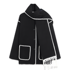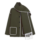 Amilia - Στιλάτη, χαλαρή μάλλινη ζακέτα με κασκόλ για γυναίκες