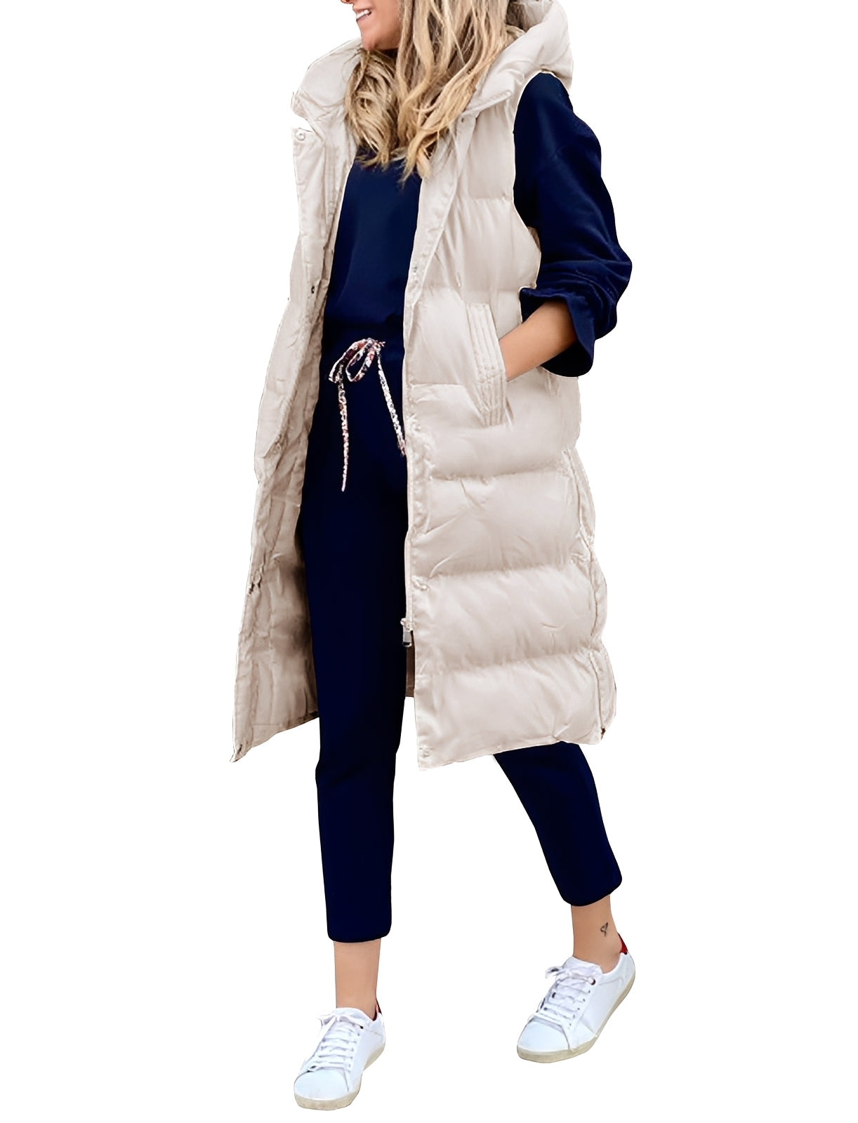 Amilia - Στιλάτο, αμάνικο, μακρύ γιλέκο-παλτό για γυναίκες