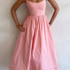 Enter every room with confidence and grace in the stunning Charry dress. Designed to hug your curves, this elegant piece features thin straps and a U neckline that creates an eye-catching silhouette. With solid pleats that add texture and sophistication, the Charry dress is the perfect choice for a night out or a special occasion. Whether you're dancing or making a statement at a dinner, this dress will make you feel powerful and full of charm.