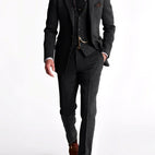 Το σμόκιν Desmond ενσωματώνει διαχρονικό στυλ και εκλεπτυσμένη χειροτεχνία. Κατασκευασμένο από υψηλής ποιότητας ύφασμα τουίντ, προσφέρει άνετη αίσθηση και κομψή δομή. Το τριμερές σετ – που αποτελείται από σακάκι, γιλέκο και παντελόνι – εξασφαλίζει μια σίγουρη, επίσημη εμφάνιση σε γάμους, γιορτές ή επαγγελματικές εκδηλώσεις. Με την κλασική του γραμμή και τις λεπτές λεπτομέρειες, είναι η τέλεια επιλογή για άνδρες με αίσθηση στυλ.