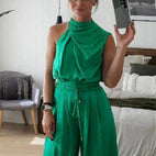 Experience the ideal blend of modern style and comfort with the Donna set. The loosely cut blouse and elegant pants offer a timeless look, perfect for special occasions and everyday life. The cleverly cut blouse gently accentuates the feminine silhouette and adds charm, while the wide pants provide a casual yet stylish impression.