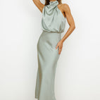 Marlene – Satin Evening Dress with Draped Neckline
