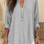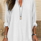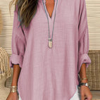Enjoy the comfort of the loose linen blouse Eliza.This blouse effortlessly combines a relaxed style with high-quality linen to offer you a stylish and casual everyday look. Made from the finest linen, the Eliza linen blouse not only provides a pleasant wearing experience but also a timeless style. The loose fit and thoughtful design make it a versatile must-have, ideal for any occasion – whether cozy at home, strolling around town, or meeting friends.