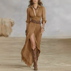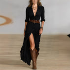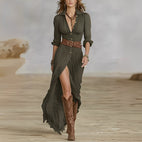 Elodie - Χαλαρό μακρύ φόρεμα με ζώνη για γυναίκες