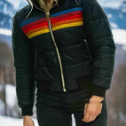 Hesterr φέρνει χρώμα στις γκρίζες χειμερινές μέρες. Αυτό το παλτό πλούσιν εντυπωσιάζει με το ζωντανό ουράνιο τόξο του και συνδυάζει εντυπωσιακό σχέδιο με χρήσιμη λειτουργικότητα. Το απαλό, επενδεδυμένο υλικό προσφέρει ευχάριστη ζεστασιά, ενώ η κουκούλα παρέχει επιπλέον προστασία από τον άνεμο. Ιδανικό για όλους όσους θέλουν να είναι στυλάτοι και το χειμώνα.