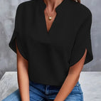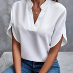The "Isalie" blouse embodies simple refinement and feminine lightness. With its lightweight fabric and elegant V-neck, it is the ideal choice for style-conscious women who appreciate comfort and aesthetics.