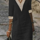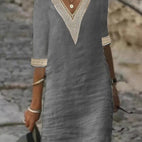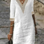 Arianne - Elegant cotton dress with V-neck and lace for women
