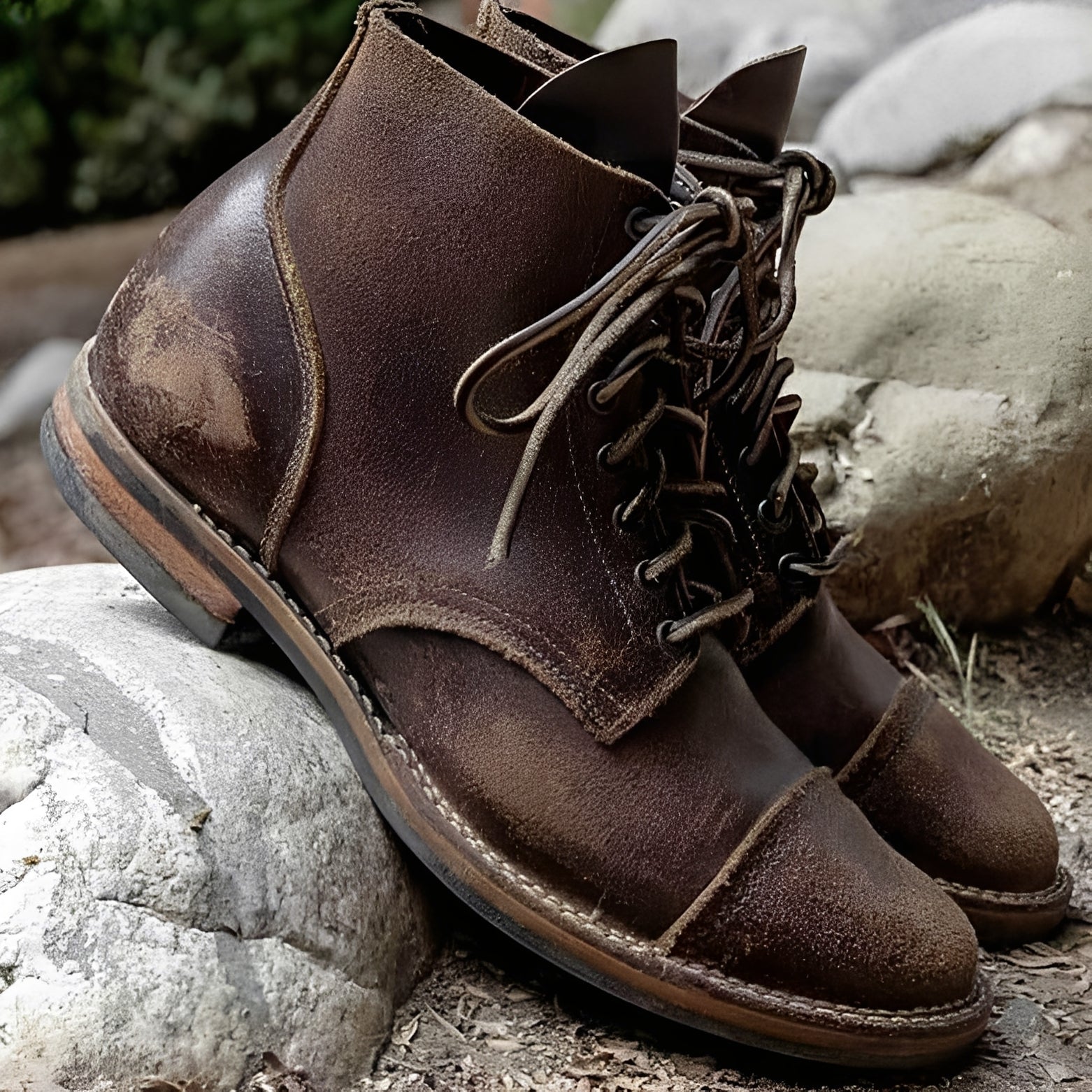 Jaydon - Ρετρό δερμάτινα μποτάκια με στρογγυλή μύτη για άνδρες