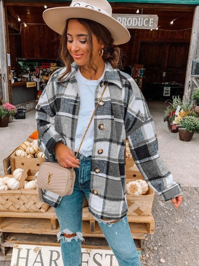 Justy - Χαλαρό, χαλαρά κομμένο φανελένιο πουκάμισο για γυναίκες