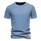 The Kyle men's casual summer t-shirt is designed to combine comfort, style, and versatility in one essential piece. Made from soft and breathable fabric, this short-sleeved t-shirt keeps you cool and comfortable during hot days. Its modern fit and classic collar give it a neat yet casual look, perfect for informal outings, weekends, or everyday wear. Durable and easy to care for, it retains its shape and color even after many washes. A wardrobe staple for men seeking a casual and comfortable style.