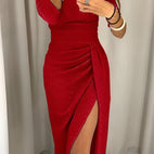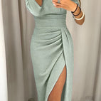 Εκθαμβωτικός σχεδιασμός: Το λαμπερό σατέν ύφασμα και η διακριτική σχισμή προσδίδουν στο φόρεμα μια πινελιά γοητείας και σας κάνουν να ξεχωρίζετε σε κάθε εκδήλωση.
