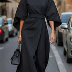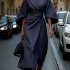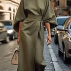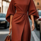Ζήστε διαχρονική κομψότητα με το γυναικείο μας midi φόρεμα - Δομημένη Α-γραμμή - Ζώνη μέσης - Καμπάνα μανίκια Κομψή ένδυση.