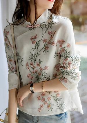 This blouse showcases a refined floral embroidery pattern with a light and comfortable fit. The detailed design provides a feminine and luxurious appearance, while the lightweightlinenfabric ensures comfortable wear. The relaxed fit is ideal for warm weather, allowing easy movement. The adaptable design suits both casual and formal events. A fashion must-have for any wardrobe.