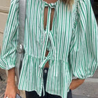 Αυτή η ελαφριά μπλούζα συνδυάζει άνεση και στυλ. Ιδανική για μια χαλαρή εμφάνιση ή μια καλοκαιρινή μέρα. Η μπλούζα με ρίγες και φουσκωτά μανίκια είναι απαραίτητη για κάθε γκαρνταρόμπα.