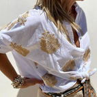 Meet Meghan: a chic, embroidered blouse with buttons that adds a touch of stylish elegance to any outfit. With fine embroidery and a classic button design, this top is suitable for both formal and casual occasions. Bring new radiance to your wardrobe with the timeless beauty of the Meghan top.