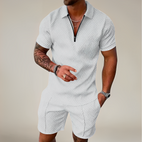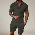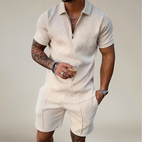 Σχεδιασμένο για εκείνους που εκτιμούν τις καθαρές γραμμές, μοντέρνες εφαρμογές, και ανεπιτήδευτο στυλ, αυτό το ανδρικό σετ με φερμουάρ πόλο και σορτς είναι το νέο σας αγαπημένο για την καθημερινή καλοκαιρινή εμφάνιση. Είτε πηγαίνετε σε BBQ, κάνετε βόλτα στην πόλη ή χαλαρώνετε με στυλ, αυτό το σετ προσφέρει άνεση και δροσιά σε ίσα μέρη.