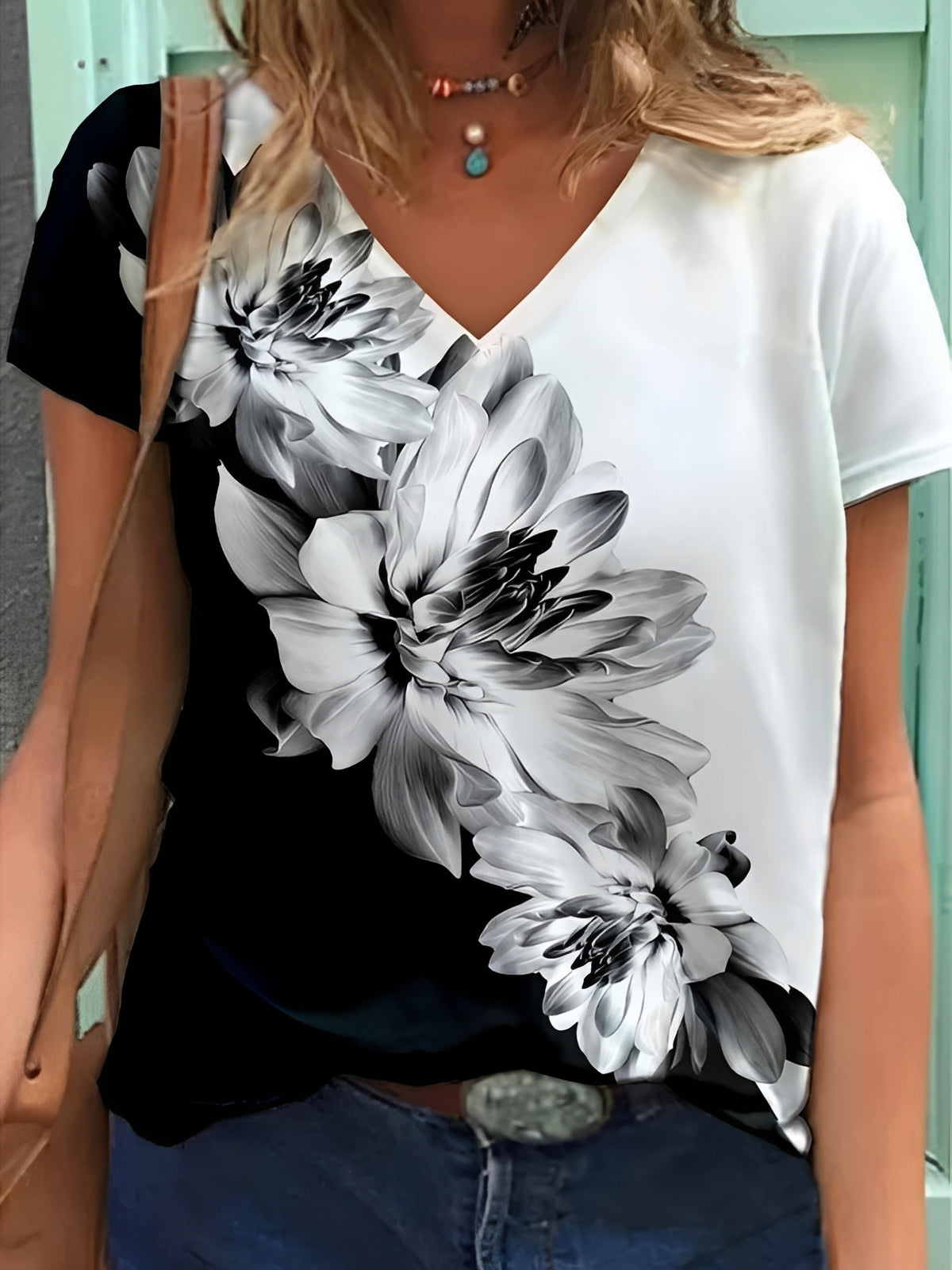 This top boasts a stylish floral pattern that adds a feminine and lively touch to any outfit. Its comfy fit offers a light and airy sensation, ideal for warm days. Whether worn casually with jeans or dressed up, it fits well with various styles. The breathable design ensures comfort and freedom of movement for daily use. Perfect for a fashionable and refreshing appearance.