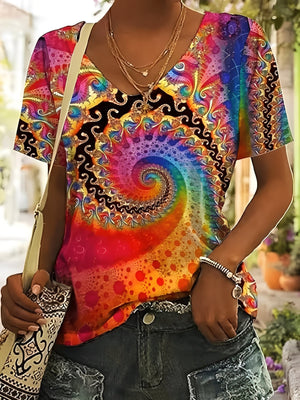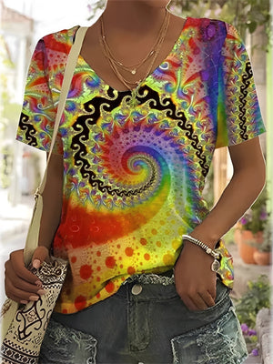 This stylish top with a V-neckline is the perfect choice for an airy yet elegant everyday look. The short sleeves ensure a comfortable feel on warm days, while the feminine cut subtly accentuates your silhouette. Thanks to its timeless design, the top can be combined in many ways – whether casually with jeans or styled a bit more chic. It offers comfort and style in one and is an indispensable basic for your summer wardrobe. Ideal for relaxed and fashionable appearances.