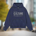 This dark blue hoodie with the inscription 'FOR THE CULTURE' is ideal for a current and relaxed style. The print with shiny details adds a subtle accent, making it a versatile and modern garment. Made from soft cotton and cut wide, it offers maximum comfort, perfect for everyday wear or a relaxed weekend look.