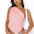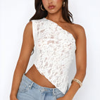 Γυναικείο Τοπ Μονόπλευρο - Δαντέλα με Λουλουδάτο Μοτίβο - Ασύμμετρος Σχεδιασμός - Κομψή Γραμμή: Αυτό το υπέροχο τοπ με μονό ώμο συνδυάζει κομψότητα με μοντέρνο και ασύμμετρο σχεδιασμό. Ένα πραγματικό βλέμμα!