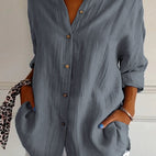 Φορέστε αυτό το γυναικείο πουκάμισο με κουμπιά, ένα διαχρονικό απαραίτητο για την γκαρνταρόμπα σας, που συνδυάζει κομψότητα με καθημερινή άνεση για μια στυλάτη εμφάνιση. Είτε ντύνεστε κομψά για τη δουλειά είτε αναζητάτε μια άνετη εμφάνιση για το Σαββατοκύριακο, αυτό το ευέλικτο πουκάμισο σας προσφέρει μια κομψή και αβίαστα σικ εμφάνιση.